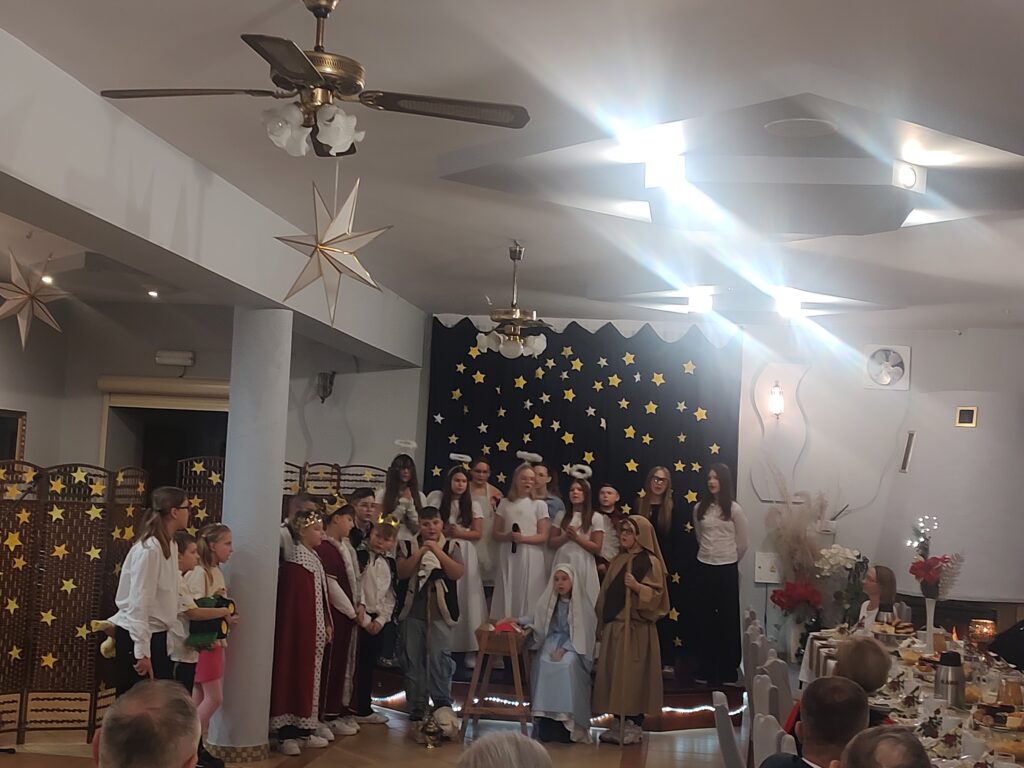 Tradycją naszego spotkania są jasełka przygotowywane przez najmłodszych mieszkańców naszej gminy. W tym roku byli to uczniowie Zespołu Szkół w Dzietrzkowicach pod opieką nauczycieli. Zaproszenie goście po raz kolejny mogli przeżyć historię Marii i Józefa szukających miejsca do schronienia na noc, którzy po bezowocnych poszukiwaniach zdecydowali się przenocować w stajni.